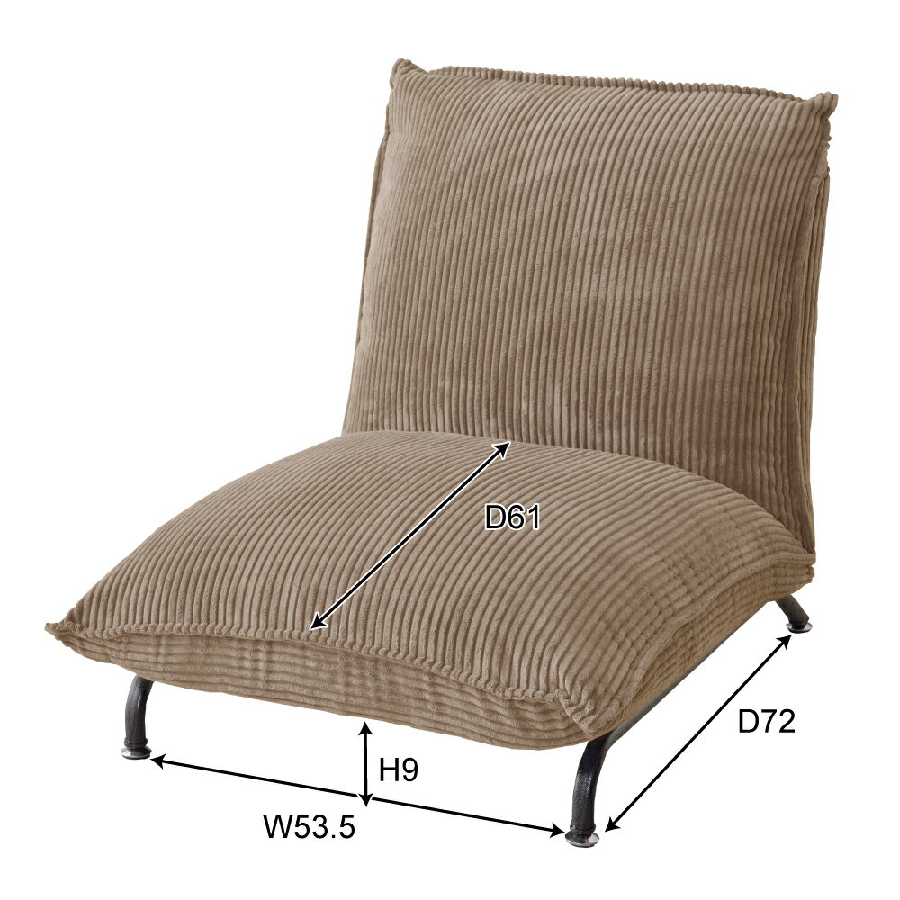 【サイズ】幅68x奥行85-132x高さ30-76xS高さ30 【材質】 スチール(紛体塗装) ハンマートーン仕上げ ポリエステル 42段階リクライニング 【原産地】 中国 【梱包サイズ】 W143.0xD71.0xH22.0 【梱包重量】 15.0kg 【商品重量】 11.0kg コーデュロイ生地はやわらかく優しい手触り、スチール脚でスッキリとした印象 ボリュームのある厚めの背もたれと座面でゆったりとしたすわり心地です。